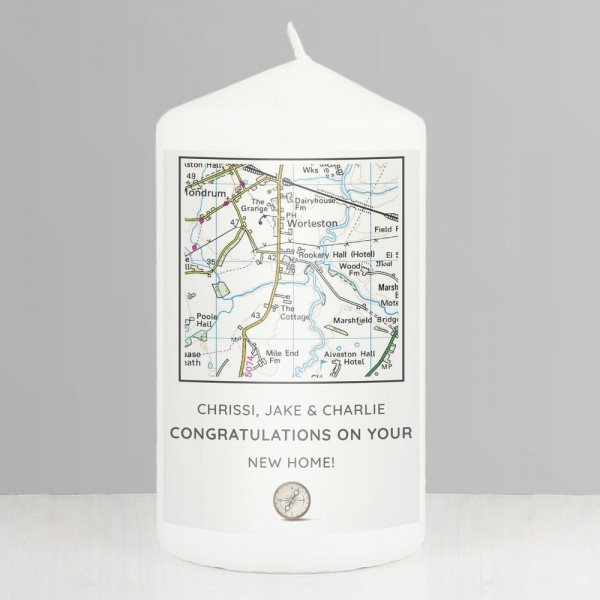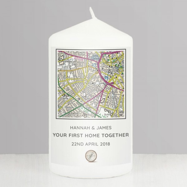 This Personalised Present Day Map Message Pillar Candle is a special way of celebrating any occasion.