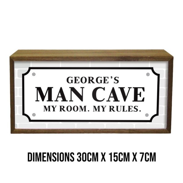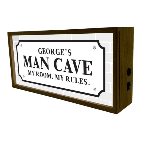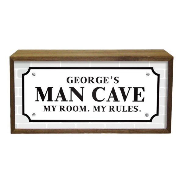 Personalised Wall Mountable Or Self Standing Wooden Light Box Sign - Man Cave