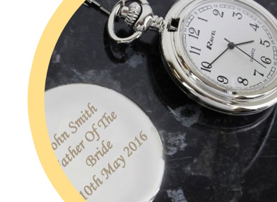 Choose the design of watch you like and add your personalisation. We will then produce it for you and have it delivered to your door. Fob watches are becoming a very popular gift for grooms and ushers at weddings and they always look terrific in photos.