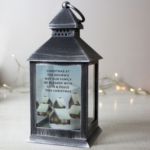 Personalised Christmas Town Black Lantern