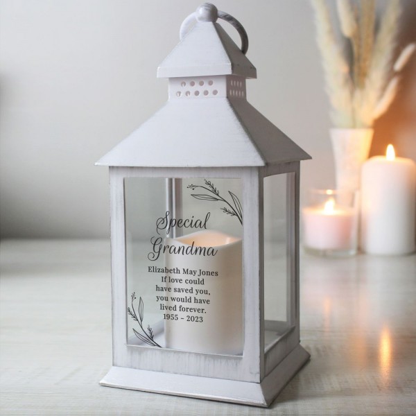 This Personalised white lantern is a lovely way to commemorate a loved one.