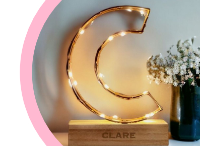 A great gift for weddings and events, your loved ones or yourself! Personalise select letter lights with a name or word engraving on the base to further personalise your sign.