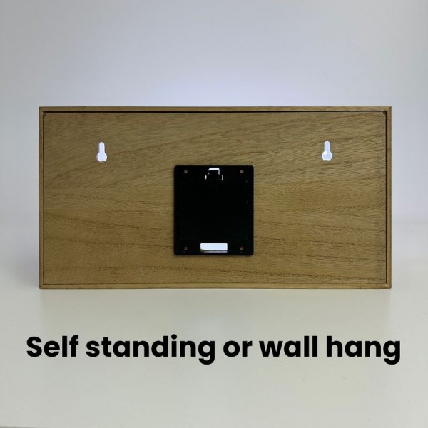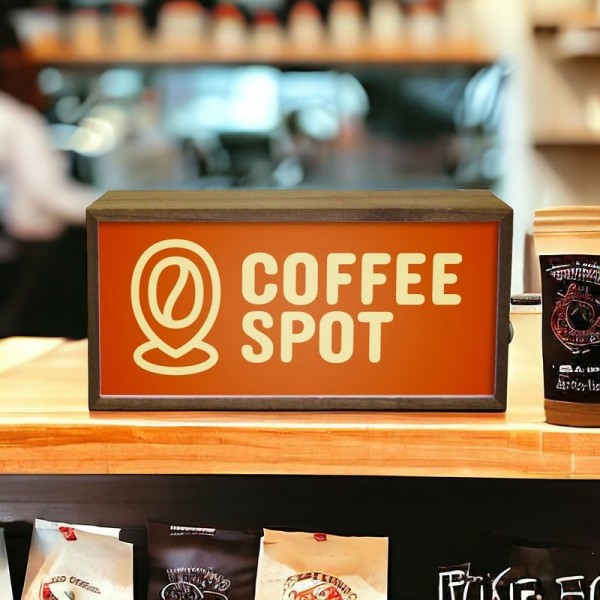 This version of the box light is made from wood. Measuring 30cm wide, 15cm tall and 7cm deep, this bespoke signage is perfect for enhancing brand identity in shops, events, or offices. Its versatile design accommodates both custom text and logo uploads, providing a tailored branding experience.