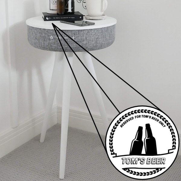Tabblue Personalised Bluetooth Side Table With Surround Sound - White - Beer Sticker