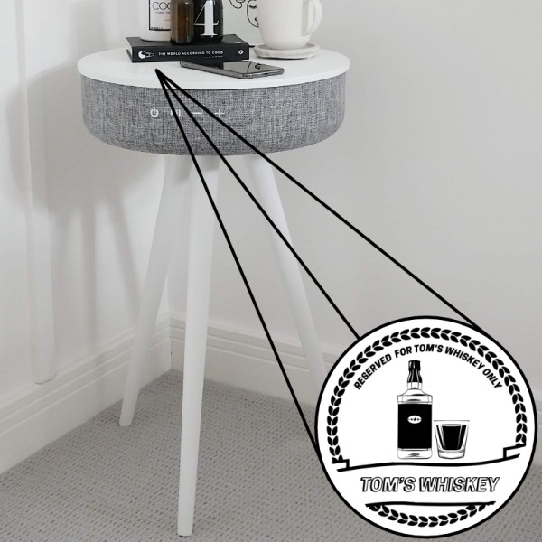 Tabblue Personalised Bluetooth Side Table With Surround Sound - White - Whiskey Sticker