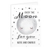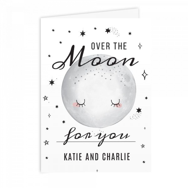 The words "Over the moon for you" are fixed text and cannot be amended.