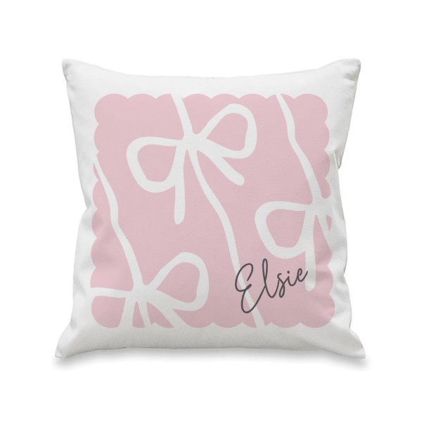 This charming cushion features a cute bow design, adding a touch of charm and colour to any space.