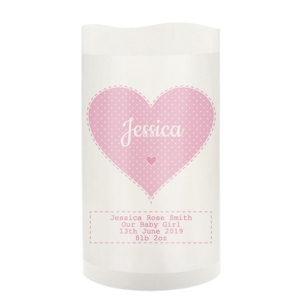 Personalised Stitch & Dot Baby Girl Night Light LED Candle