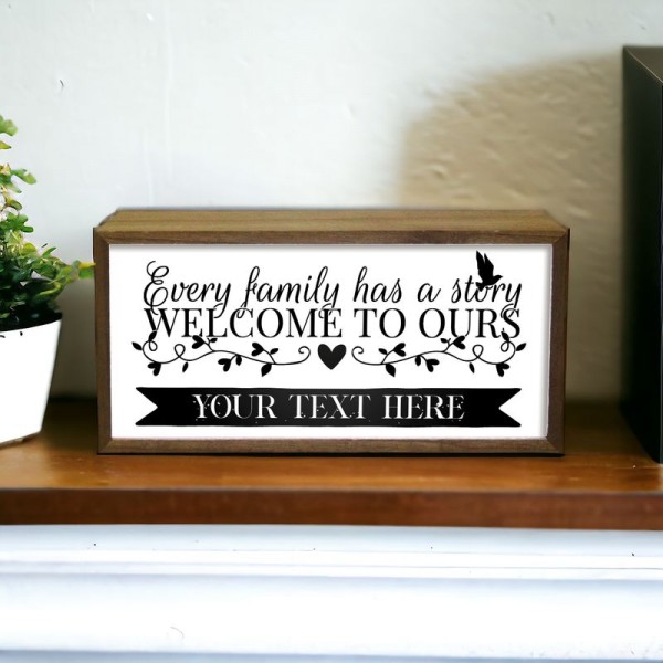 Personalised Wall Mountable Or Self Standing Wooden Light Box Sign - Welcome To Ours is a stylish and inviting addition to any home, designed to make a warm and welcoming statement in your hall entrance.