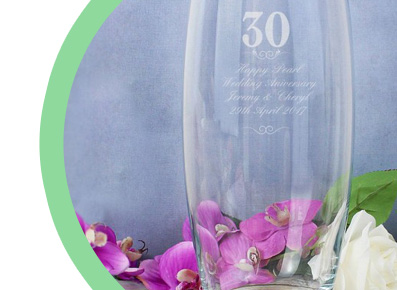 Some of our best selling pearl anniversary gifts include personalised champagne, champagne glasses, vases, clocks, mementos and much more. You'll find that our engraved anniversary gifts will always bring a smile to the person you're buying it for, whether it's your husband, wife or if you are buying for a couple you know who will be celebrating their 30th wedding anniversary. Less well know is that the Lily is the flower that represents a 30th anniversary so we always recommend if you purchase a personalised vase that adding lillies are always a good extra. We also have various other gifts for other anniversaries which you'll find throughout our website and as with all our presents that can be made personal for no extra cost.